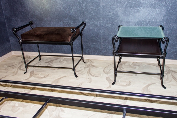 Уникальная кованая кровать "Анастасия", французского дизайна с полимерной покраской. Имеются столик и пуфик такого же стиля.