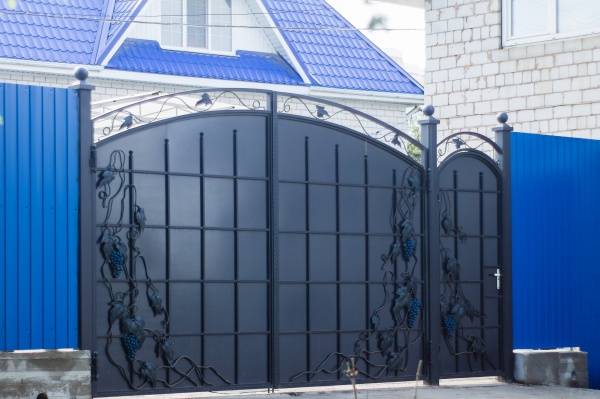 Кованые ворота "Виноградная лоза", с декоративными элементами художественной ковки ручной работы